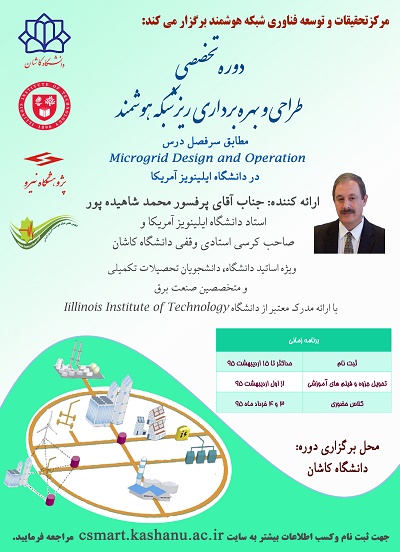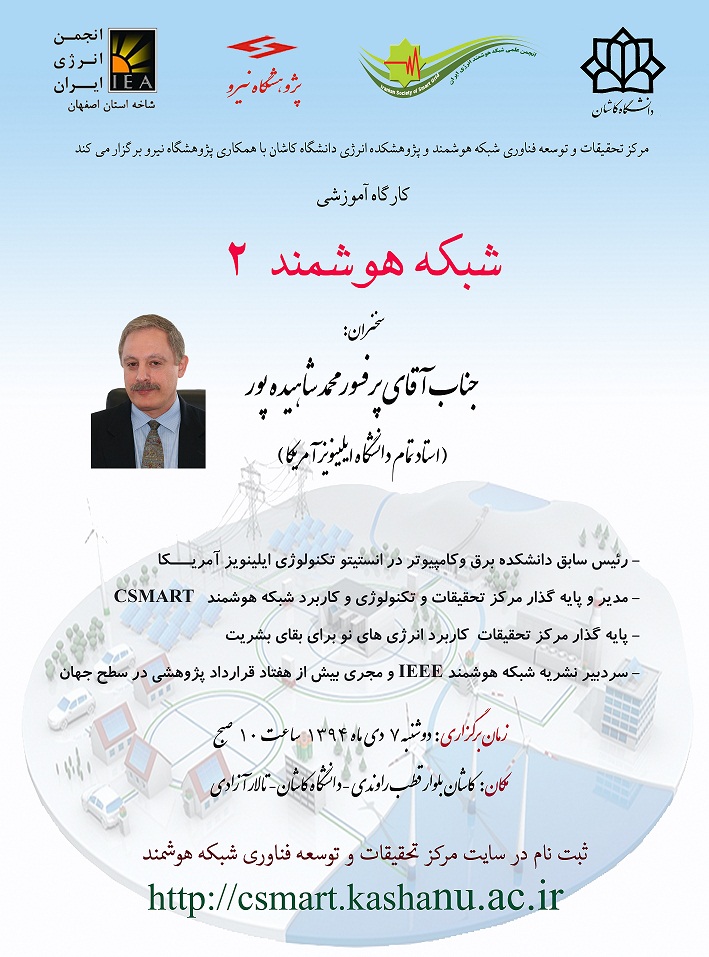 نشست دانشافزایی شبکههای هوشمند با حضور پروفسور محمد شاهیده پور رییس دانشکده برق و کامپیوتر انستیتو تکنولوژی ایلینویز آمریکا در دانشگاه کاشان برگزار شد. رییس دانشکده برق و کامپیوتر انستیتو تکنولوژی ایلینویز آمریکا گفت: با توجه به پیشرفت تکنولوژی، آینده توزیع نیروی برق جهان به سمت شبکههای هوشمند است. محمد شاهیده پور اظهار داشت: شبکههای هوشمند (smart grid) و ریز شبکهها (micro-grid) از جدیدترین مباحث و موضوعات تحقیقاتی و صنعتی در دنیاست و آینده شبکههای برق در دنیا رفتن به سوی استفاده از این تکنولوژیهاست.