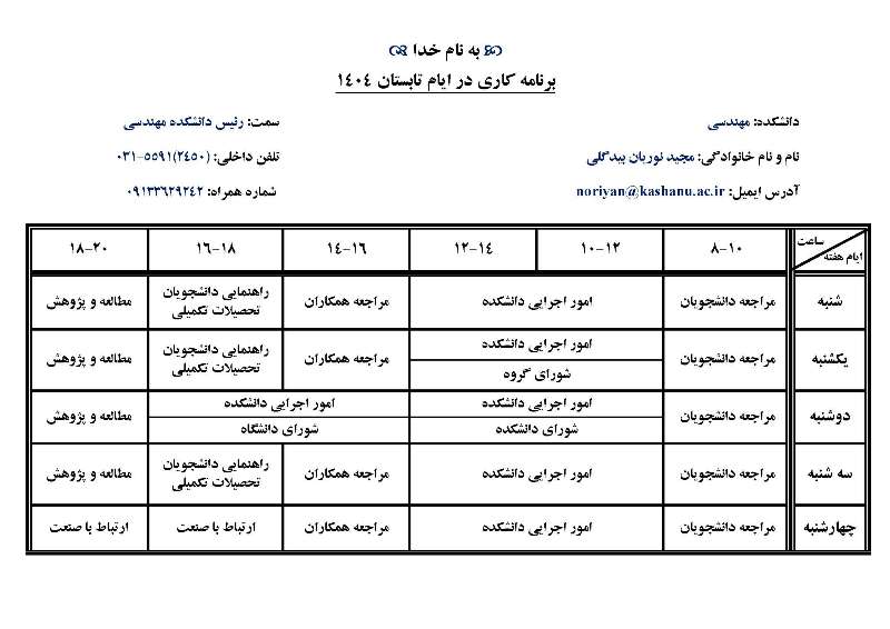 سال تحصیلی ۱۴۰۴-۱۴۰۵ نیمسال اول